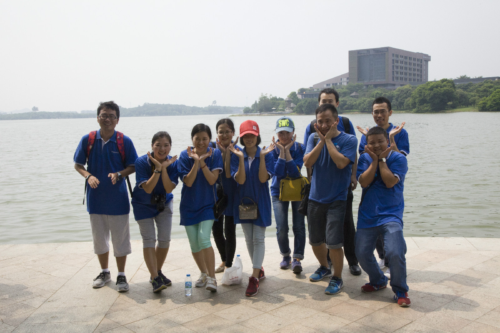 早晨8点30分,德信在线登录工会的青年会员们统一身穿公司蓝色文化衫,统一乘车前往拓展基地——东莞松山湖风景区。到达目的地后,在拓展公司专业教练的带领下,首先开展了团队破冰——男女青年会员“天使和仆人”游戏,让参加活动的男女队员建立相互信任关系,全身心参与到联谊活动中来。在教练的指导下,全体队员男女搭配,分为两个小队,分别进行了口号、队歌和队形设计和形象展示。随后,由各队长向教练领取《定向穿越任务书》,分别组织队员开展了桃花岛“衔杯传水”、珍稀特果园寻找果树、前往虹桥“穿越封锁”、荷香水榭“七巧板”、烟雨亭与“43码大脚”的游客合影、阳光沙滩蜈蚣行走、黄金竹海“最后缘分”等趣味活动。